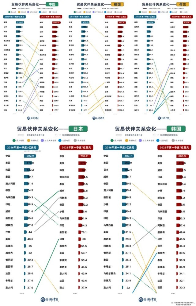 另一方面,除了深化亚太区域经济合做,中国还取拉丁美洲、中东等地域的国度成立了愈加慎密的联系。相关地域国度正在中国商业伙伴排名中的大幅上升。