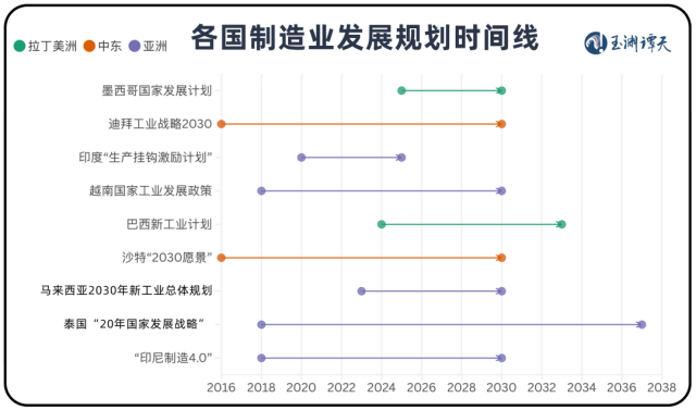 若是将制制业成长规划做为评估量谋规划能力的目标,会发觉,阿联酋、沙特等中东国度的成长规划早正在2016年,就曾经推出。